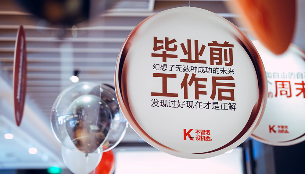 在KFC梦想气泡主题餐厅,气泡和梦想一起升腾,咖啡的香醇和职场的宣言一起酝酿。
